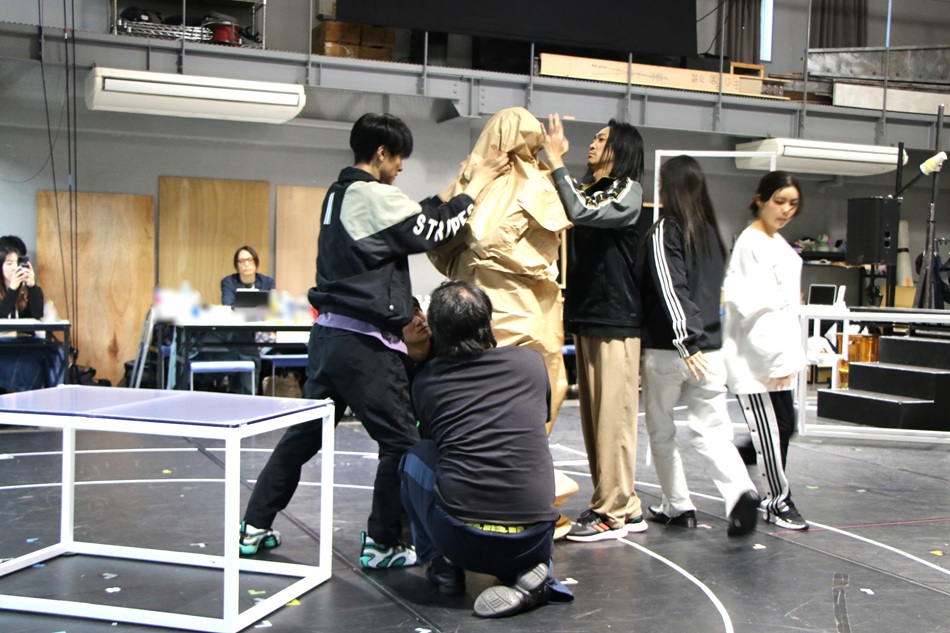 その後、休憩を挟んで、台本の最初から最後までを本番と同様に初めて行う「荒通し」へ。演出の加古が「リラックスして臨んでください。ただ、この作品は俳優陣の熱量が大事な舞台なので、熱量を持って挑んで欲しいなと思います」とキャストたちに呼びかけ、荒通しがスタートした。