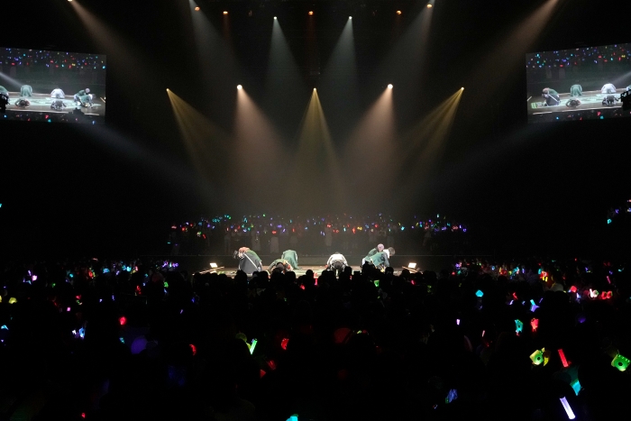 今回の「かうんとだうんぱーてぃー」は、篭手切江、豊前江、桑名江、松井江、五月雨江、村雲江、大典太光世、水心子正秀の8振りが出演し、メドレー構成を含めた全25曲を披露したライブの合間には、これまでのすていじを振り返る場面や、紅白対決の企画コーナーなど年末らしいお楽しみも。最後には刀剣男士たちが書初めを行い、全員で1画ずつ「歩」の字を完成させ、これまでの歩みへの感謝と、これからの『はじめの一歩』への期待を込めて、2026年の新たな一歩を皆様と共に華々しく踏み出すことができた。