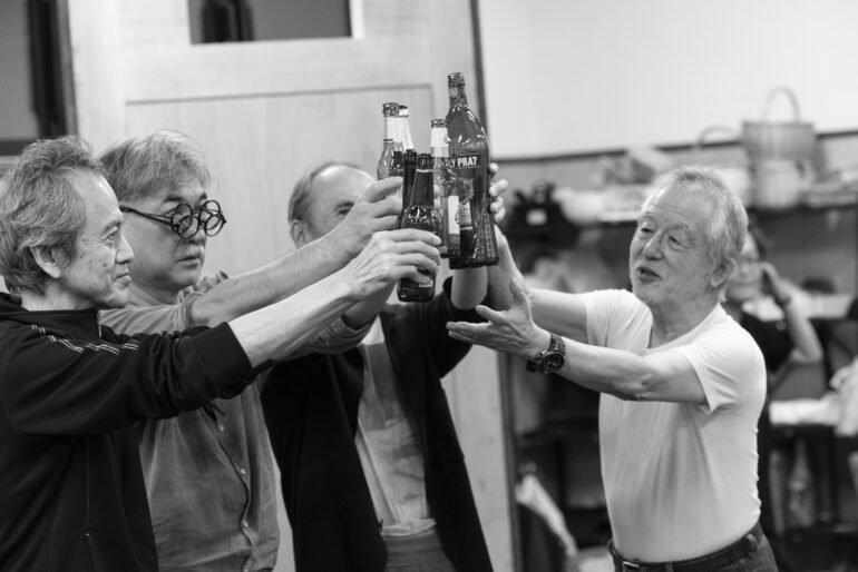 アイルランド出身の劇作家で詩人、小説家でもあるジョン・ミリントン・シングの戯曲『The Playboy of the Western World』を原作に、串田和美(以下、串田)が潤色し、演出、美術を手がけるフライングシアター自由劇場の最新作『西に黄色のラプソディ』。串田はこの作品を、オンシアター自由劇場時代の1975年、1977年、1981年、そしてまつもと市民芸術館芸術監督時代の2009年、2021年と、過去5回にわたり創ってきたが、6回目の上演となる今回は串田作品初参加の那須凜と内田健司,、そして2021年版で今回と同じクリスティ役を務め舞台デビューを果たしていた串田十二夜(以下、十二夜)、元オンシアター自由劇場のメンバーである大森博史と真那胡敬二、串田とは32年ぶりの共演となる銀粉蝶、さらには劇団はえぎわメンバーの井内ミワクと竹口龍茶らも加わり、フレッシュな顔合わせが実現することになった。果たして今回はどんな作品になるのか、そのヒントを探るため、10/20(月)の初日開幕を目指して着々と芝居作りが行われている稽古場を訪ねた。その模様をレポートする。