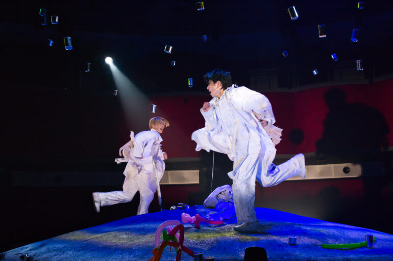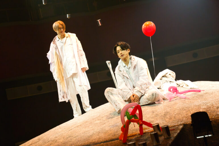 本作は一見すると、夢を追う人と夢を追わない人の対立関係を描くが、梅津の描き出す世界観はそう単純明快ではない。2人の男の間で繰り広げられているように見える会話は、そもそも本当に対話なのか、それとも1人の男の自問自答なのか。滅亡した世界で出会った2人の男や、医者風の男と何も思い出せずその場にいる男、同居中の夢を追いかける男と夢を諦めた男。これらの男たちの会話に、さらには男たちによる劇中劇も加わり、それらが入れ子構造となって物語はいっそう複雑となっていく。どれが夢で現実かは、判然としないし、その境目を探すこと自体、意味のないことなのかもしれない。受け取り方は観客それぞれに委ねられているが、それでも、悲痛なまでの“何者かになりたい”という渇望は伝わってきた。同時に、舞台上で表現できるのであれば、何者であるかなんて関係ないと叫ぶような2人の熱演にも胸を打たれた。