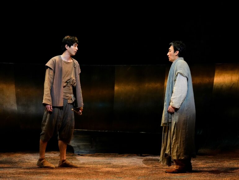 長田育恵(劇作)×白井晃(演出)×三宅純(音楽)、そして草彅剛主演の舞台『シッダールタ』が11月15日(土)に開幕した。原作はヘルマン・ヘッセの傑作小説。叙事詩的/哲学的な力強い言葉、時空を超えて古代インドに誘われるような音楽、美術・照明・音響さまざまな要素が有機的につながる劇空間――。一人の男の魂の遍歴を描いた壮大な物語が鮮やかに立ち上がった、最終舞台稽古のレポートを送る。