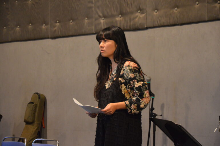 いくつものパターンやバージョンの試演によって見えてくる、テキストの細部に宿る可能性。それには当然、行間や余韻の滞空時間も含まれる。目には見えない小さなものや出来事の集まりが場や人を動かし、その場の空気をつくっていること。「演出」とは「試み」の堆積なのかもしれない。そんなことを痛感せずにはいられないアクション/リアクションであった。それはもちろん、バンドとのセッションにも同じことが言える。