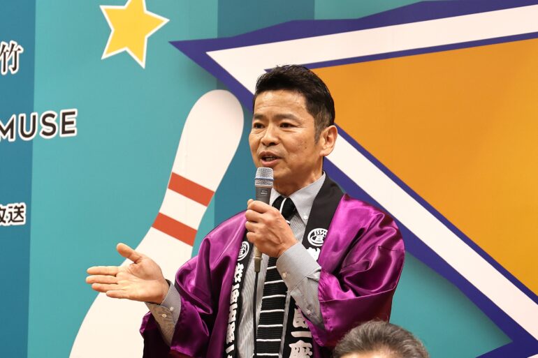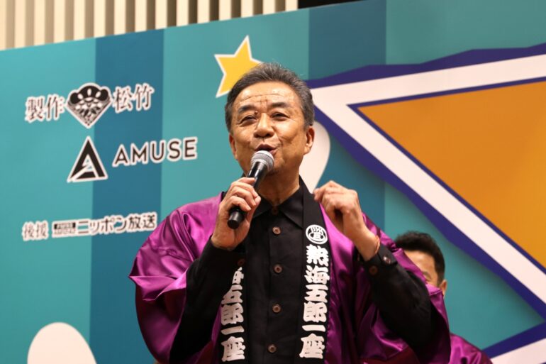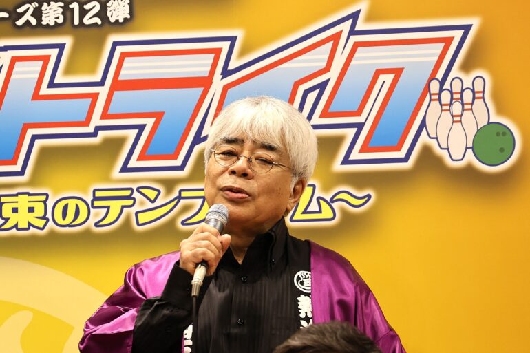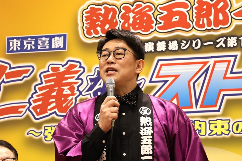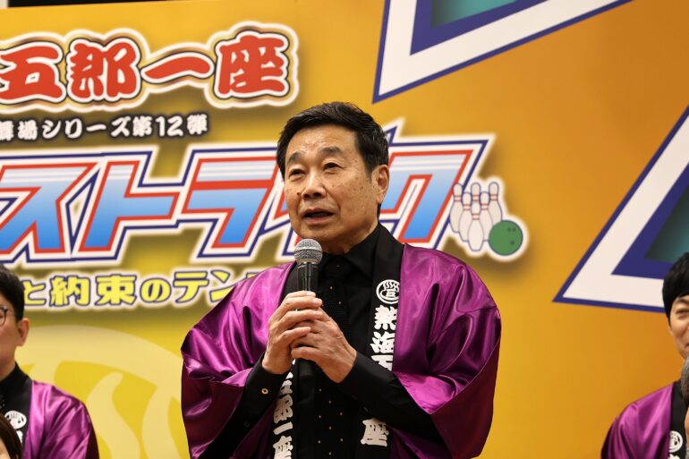 新橋演舞場 にて5、6 月に上演される、「熱海五郎一座 新橋演舞場シリーズ第 12 弾 東京喜劇『仁義なきストライク〜弾かれた栄光と約束のテンフレーム〜』」。