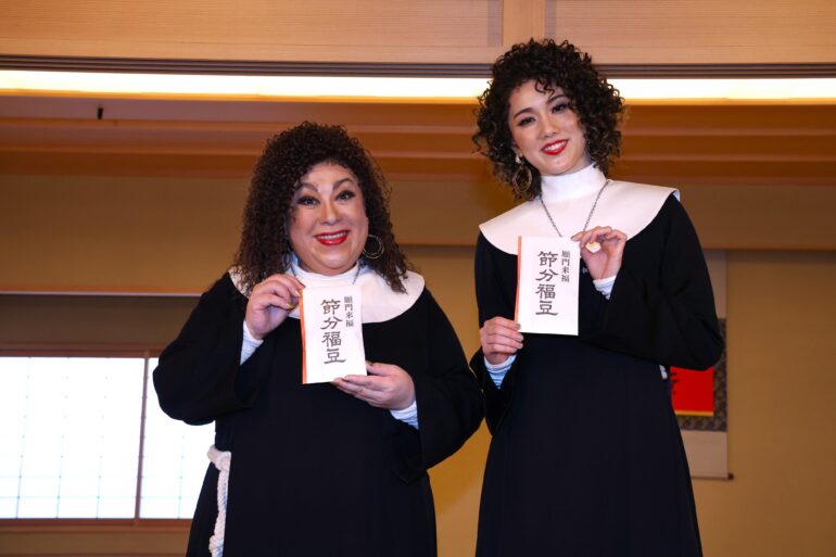 森 公美子・彩風咲奈が豆まきに降臨!ミュージカル『天使にラブ・ソングを~シスター・アクト~』水天宮節分祭&囲み取材レポート