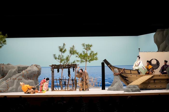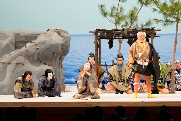 昼の部最後の演目は、近松門左衛門のドラマ性溢れる名作『平家女護島』より『俊寛』。片岡仁左衛門演じる俊寛は、絶海の孤島、鬼界ヶ島に流罪となった身。ある日、中村隼人演じる丹波少将成経と中村莟玉演じる海女・千鳥の結婚を祝っていると、都からの赦免船がやってくる。都に帰れると思い喜ぶ一同だったが、坂東彦三郎演じる瀬尾太郎兼康は、千鳥の乗船を拒否。俊寛は自らの代わりに千鳥を赦免船に乗せるよう訴え、瀬尾と決闘に。やがて俊寛が討ち勝つと、中村勘九郎演じる上使・丹左衛門尉基康は俊寛の心情を慮り、千鳥の乗船を許す。一人島に残ることを決意した俊寛は船を見送るものの、名残惜しさに悲痛な叫びをあげるのだった。象徴的な幕切れに会場は感動に包まれ、割れんばかりの拍手で幕を閉じた。